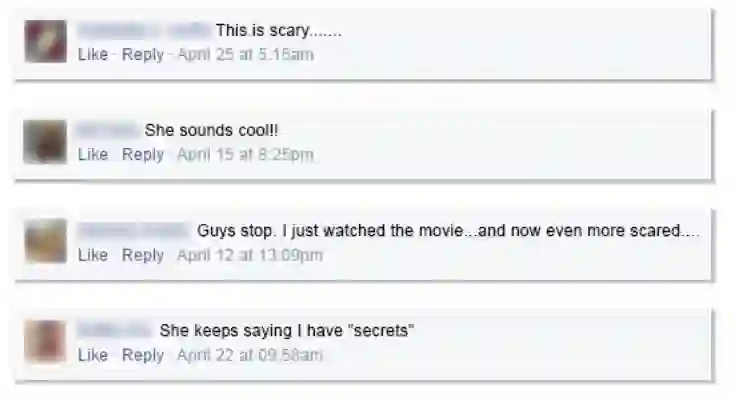 留言都在表示“太吓人了!”、“我刚看了电影,(聊天后)更加害怕了......”
