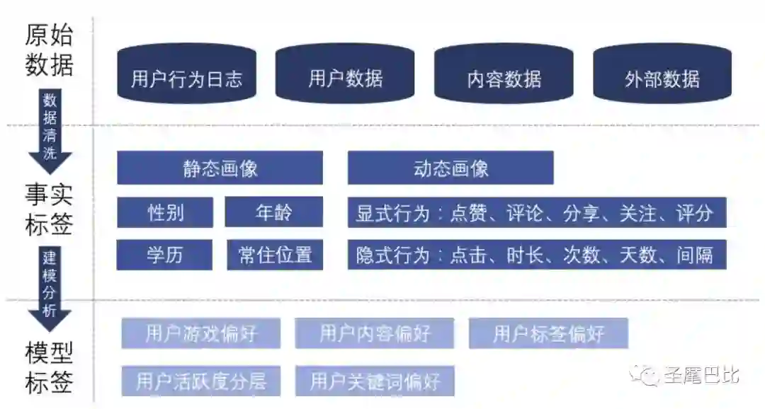 外部数据: 单一的产品只能描述用户的某一类喜好,例如游戏的喜好、视频的喜好,外部数据标签可以让用户更加的立体。