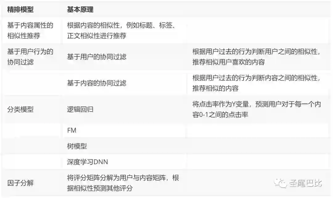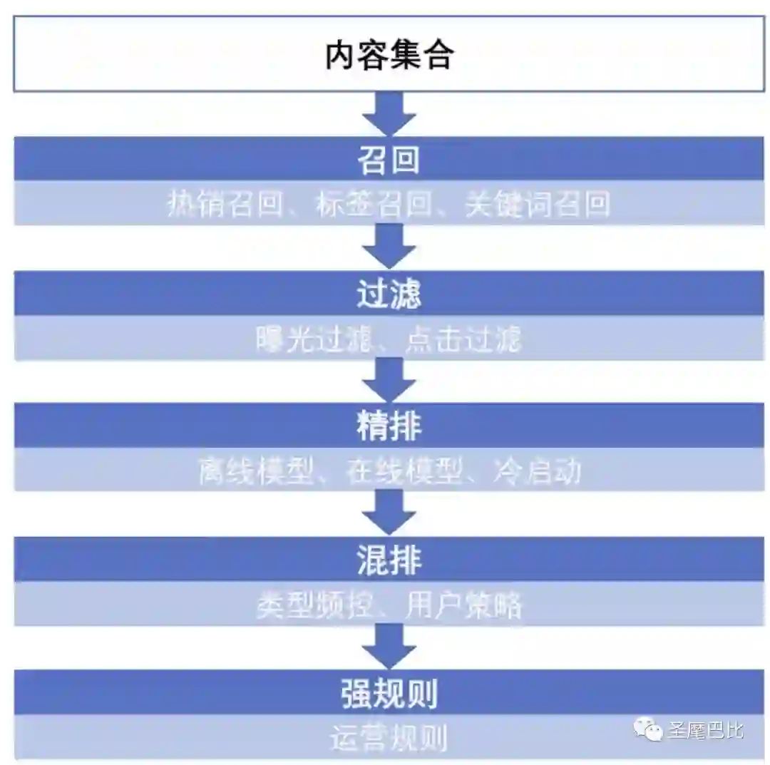 召回:当用户以及内容量比较大的时候,往往先通过召回策略,将百万量级的内容先缩小到百量级。