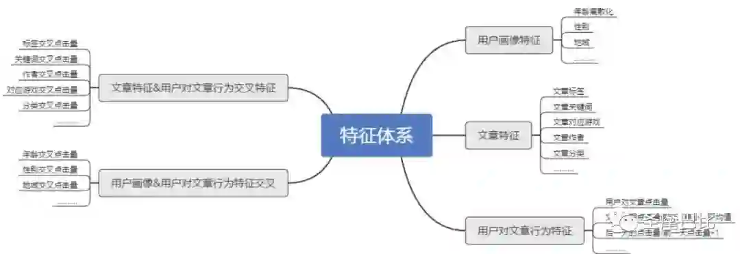 特征工程是对收集到的样本进行更加深度的特征刻画。虽然作为算法人员与用户接触较少,但对身边使用该产品的同学,进行深入的观察与访谈,了解他们对于所推荐内容的反馈,往往可以得到意料之外的特征开发方向。主要分为以下几个维度。