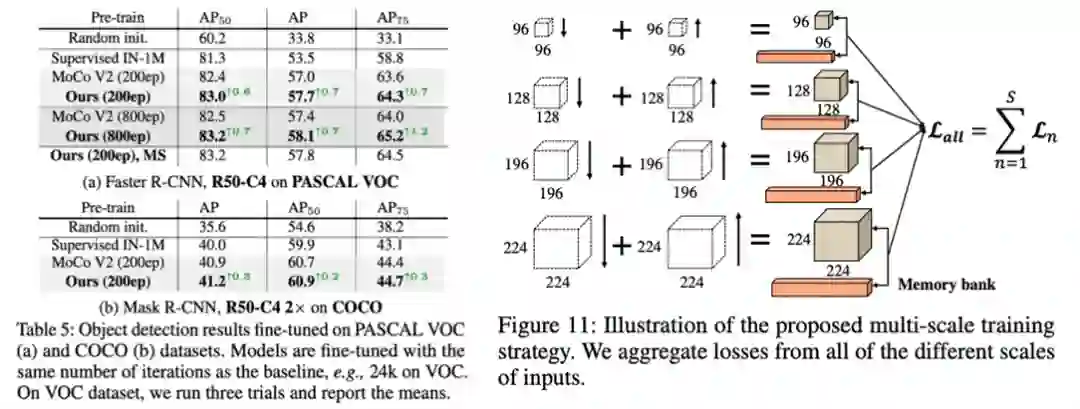 此外,作者还讨论了如何处理含有 memory bank 的框架以及如何进行多尺度(multi-scale)训练(如上图 11 所示),有兴趣的同学可以去阅读原论文。