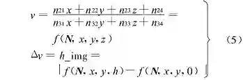 式中:v 为图像纵向坐标:N 为透视变换矩阵;(x, y, z) 为行人的局部坐标,其中 z 为行人高度。由式 (5) 可得不同距离下行人在图像中的高度 Δv。同理,由聚类过程中得到的边界点信息,可以得到行人在图像中的宽度,在实验中,设行人高 h = 2.0 m。