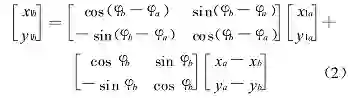 式中:(x_lb, y_lb) 和 (x_la,y_la) 分别为摄像头和激光雷达采集时刻下的行人局部坐标,由于行人速度相对车辆移动速度较慢,其位移可忽略不计,而激光雷达时刻下的行人局部坐标可以直接通过激光雷达数据获得,2 个时刻之间的车辆位姿差,即 (x_a - x_b,y_a - y_b) 可以通过航位推算公式获得。从而可以获得在图像采集时刻下的行人局部坐标,即获得了这个时刻下的激光雷达层坐标,解决了两者之间的同步问题。