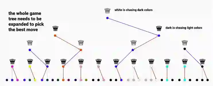 给定一个根节点加上游戏规则,我们可以遍历它,而不需要将整个树存储在内存中。在最初的形式中,它根本没有扩展并且处于游戏树的根部,其余节点未被访问。一旦我们考虑到一个动作,就会想象这个动作会产生什么样的结果。