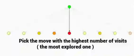 我们现在知道成功实施蒙特卡罗树搜索所需的所有条件,但我们什么时候才能真正结束蒙特卡罗树搜索程序?答案是:它取决于上下文。如果你构建了一个游戏引擎,那么你的“思考时间”可能是有限的,再加上计算机的计算能力也有限制。一旦蒙特卡罗树搜索程序完成,最好的移动通常是访问次数N最多的移动,因为它的估计价值最高(经常被探索)。