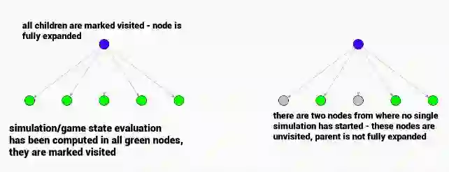 蒙特卡罗树搜索游戏树也有同样的区别。节点被视为访问或未访问,对于要访问的节点意味着如果一个节点的所有子节点都被访问,则节点被认为是完全扩展的,否则它没有完全扩展,但是可能会进一步扩展。