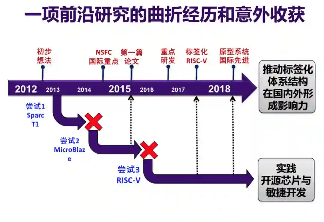 包云岗和开放指令集(RISC-V)走到一起,可以说有必然也有偶然。他也曾想过创业,甚至为此做了很多功课,建立过中美两国科学家创业的项目、融资名单,还梳理过中美两国政府、院所对科学家创业的态度和政策。后来为了验证自己的项目,包云岗花了很多功夫研究开源芯片,最后发展到开源芯片路线上来。