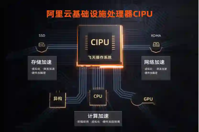 6 月 13 日,阿里云智能总裁张建锋在峰会上正式发布 CIPU(Cloud infrastructure Processing Units),这是为新型云数据中心设计的专用处理器,未来将替代 CPU 成为云计算的管控和加速中心。
