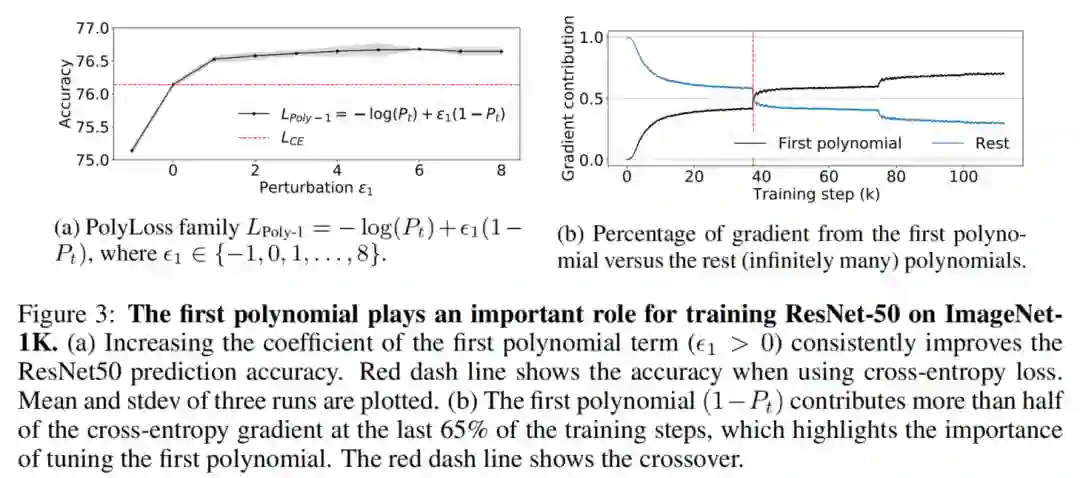 在前面的谈论中建立了PolyLoss框架,并展示了Cross-entropy loss和Focal loss简单地对应于不同的多项式系数,其中Focal loss就可以表达为水平移动了多项式系数的Cross-entropy loss。