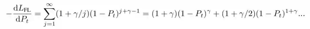 通过将所有多项式项的幂移动γ,第1项就变成 ,被γ抑制,以避免过拟合到(即 接近1)多数类。