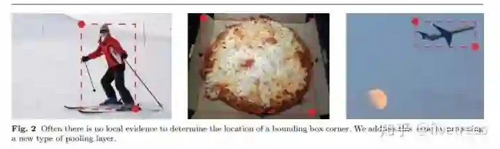 如上图所示,通常一个目标的边界框的角点是不包含该目标的局部特征信息的,那么我们如何判断某一个位置的像素点是否是某一个目标的角点呢?拿左上角点来说,对于左上角点的上边界,我们需要从左往右看寻找目标的特征信息,对于左上角点的左边界,我们需要从上往下看寻找目标的特征信息(比如上图中的第一张图,左上角点的右边有目标顶端的特征信息:第一张图的头顶,左上角点的下边有目标左侧的特征信息:第一张图的手,因此如果左上角点经过池化操作后能有这两个信息,那么就有利于该点的预测,这就是Corner pooling的主要思想)。