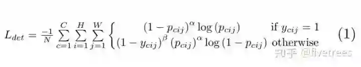 上图是针对角点预测(headmaps)的损失函数,整体上是改良版的 Focal loss 。几个参数的含义: