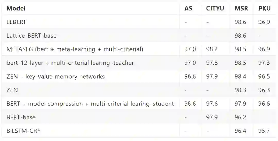 BERT + Model Compression + Multi-criterial Learing 的想法非常简单粗暴,由于分词标注的主观性导致了现有数据集在分词粒度上会有分歧,所以想利用某种方式捕获粒度不同且能够利用共同基础知识。