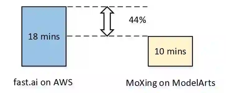 采用与 fast.ai 一样的硬件、模型和训练数据,ModelArts 可将训练时长可缩短到 10 分钟,创造了新的纪录,为用户节省 44% 的时间。