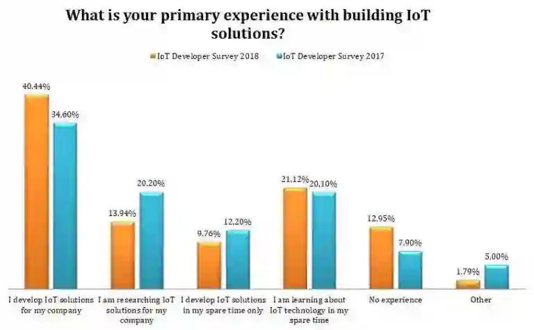 但是据 Eclipse IoT 发布的《2018 年物联网开发者调查报告》显示,企业开发物联网解决方案的增长率仅为 5.8%。不过虽然增长缓慢,但也透露出物联网企业们正在摆脱理论领域,更多地将理论付诸于实践。
