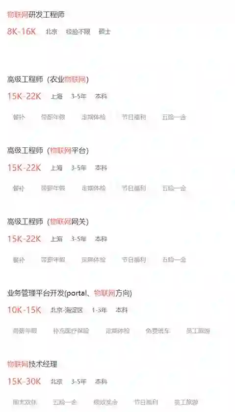 这其中,物联网的构建难度之高不得不提。在物联网中,组网、人机交互、数据、安全特性等技术碎片化太过严重,因此它不单单是纯软件的开发,还需要掌握硬件的嵌入式等技能。这种背景下,物联网开发者的热度也自然很高。仅从国内某知名招聘平台上,就可以发现物联网工程师平均就业薪资可以达到 15K/月,且全网的招聘需求高达 14000+ 条。