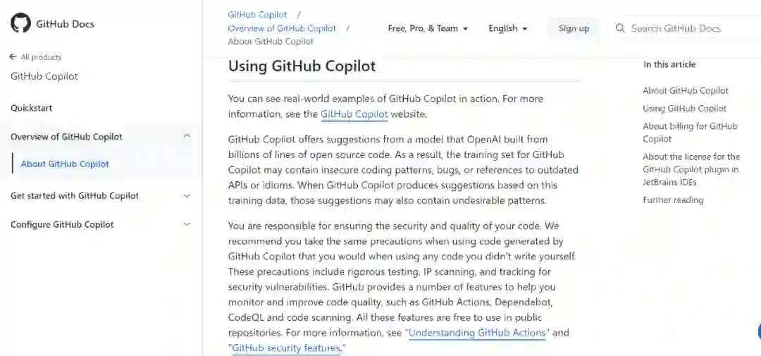 你要对你代码的安全性和质量负责。我们建议您在使用由 GitHub Copilot 生成的代码时采取与使用其他任何非本人所写代码时相同的预防措施,包括严格的测试、IP 扫描和安全漏洞跟踪。