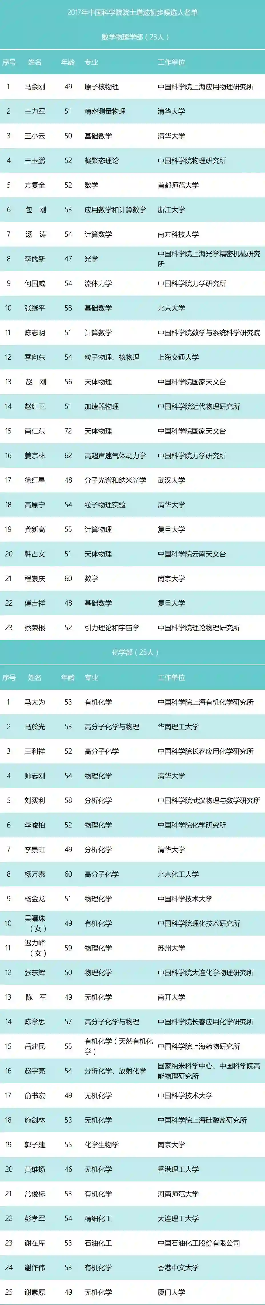 刚刚,中国科学院正式公布了2017年中国科学院院士增选初步候选人名单,共计有157位科学家入选。