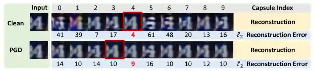 2017 年,图灵奖获得者 Hinton 提出的胶囊网络为深度学习研究开启了一扇新的大门。此后,对胶囊网络的探索便一直是该领域最前沿的研究话题。2018 年 11 月,Hinton 团队曾在论文「DARCCC:Detecting Adversaries by Recontruction from Class Conditional Capsules」中提出通过图像重建网络监测对抗性攻击的方法。上个月,Hinton 团队再发力作,进一步完善了胶囊网络在机器学习安全领域的应用。