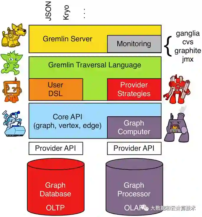 gremlin server: httpserver/websocket server接收标准的gremlin dsl语法,自身相当于一个计算节点,完成图的遍历,或者操作DML语言,操作底层OLTP图库。