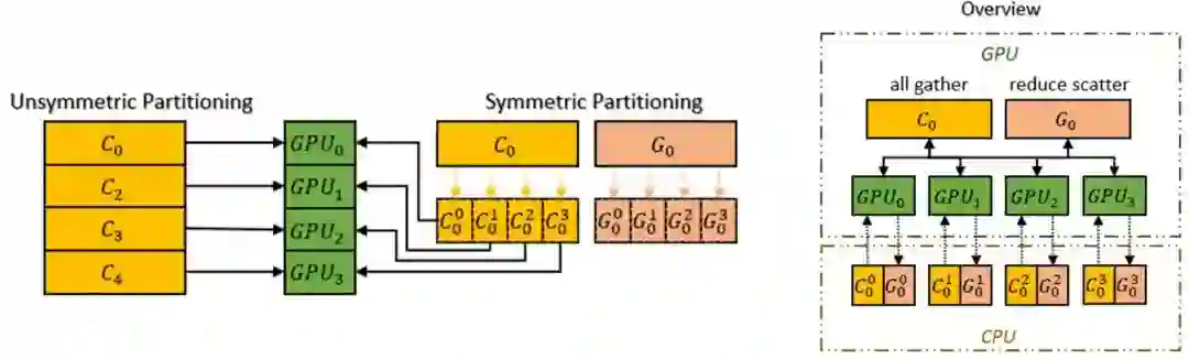 Chunk方式组织内存可以保证PCI-e和GPU-GPU之间网络带宽的高效利用,减小了通信次数,同时避免潜在的内存碎片。