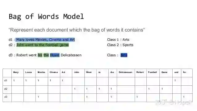 2. 这个模型对单词出现的顺序没有任何记录,因此“勇士打败雷霆”和“雷霆打败勇士”这两个短语,在BOW模型中认为意思是完全一样的。