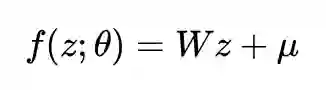 因为 f(z;θ) 是 z 的非线性函数,所以这不再是一个线性高斯模型。观测变量的边缘分布: