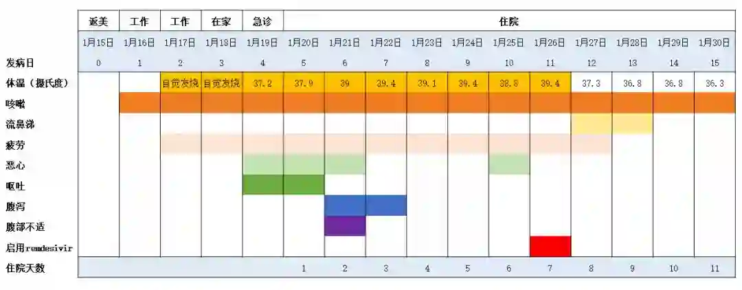 北京时间 2020 年 2 月 1 日凌晨,顶级医学期刊《新英格兰医学杂志》(NEJM)刊登美国首例确诊病例的诊疗过程以及临床表现:在使用抗埃博拉病毒药物瑞德西韦后,该患者的病情出现了迅速缓解。图 | NEJM 刊登美国首例确诊病例的诊疗过程以及临床表现。在使用抗埃博拉病毒药物瑞德西韦(Remdesivir)后,该患者的病情出现了迅速缓解(来源:论文)