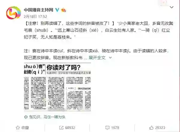 最近,一条号称规范读音变了的帖子火遍了互联网。