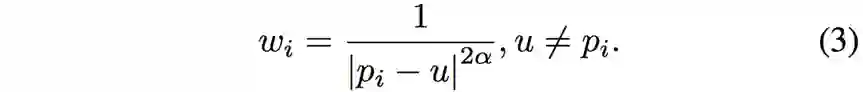 权重的物理意义为:离点u越近的控制点,对u影响越大。定义为