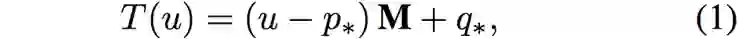 Similarity Transformation的流程如下。给定图像上的点u,通过线性变换M得到新的位置,