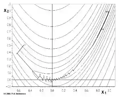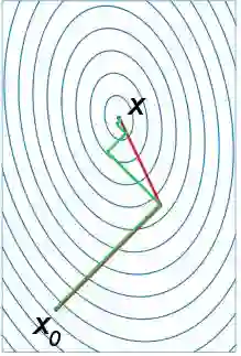 下图为共轭梯度法和梯度下降法搜索最优解的路径对比示意图: