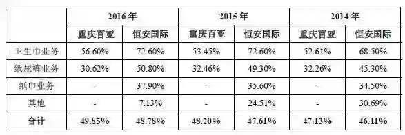 卫生巾的利润率一般高于婴儿纸尿裤和其他成人卫生用品,也高于一般纸品。据公开数据,2016年卫生巾龙头老大恒安集团旗下卫生巾业务年收65亿,毛利率稳定在72.6%。