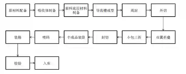 一次性卫生用品由于直接与人体接触,在生产制造流程上有一定特殊性。如果我们解构一片卫生巾,则由上到下分别是: