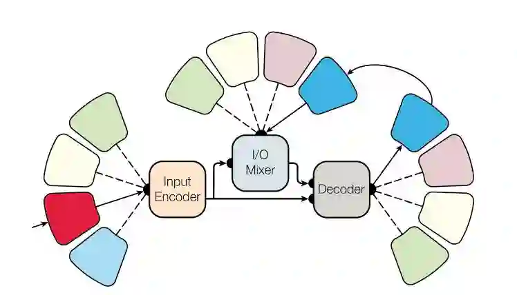 ▲ MultiModel 架构:特定小模态子网络搭配共享编码器、I/O 混合器和解码器。每个分支代表一种模态,通过内部表征相互转换。