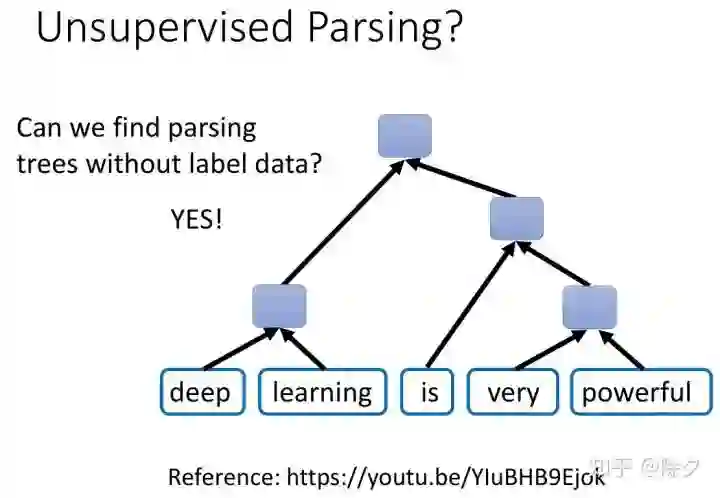 之前讲的都是无监督的成分句法解析,我们可不可以做一个无监督的句法解析呢?之前助教有做过无监督成分句法分析的讲解,讲解视频如下。