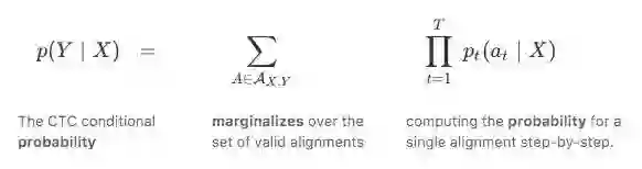 确切地说,如果CTC的目标是一对输入输出(X,Y),那Y的路径的概率之和为: