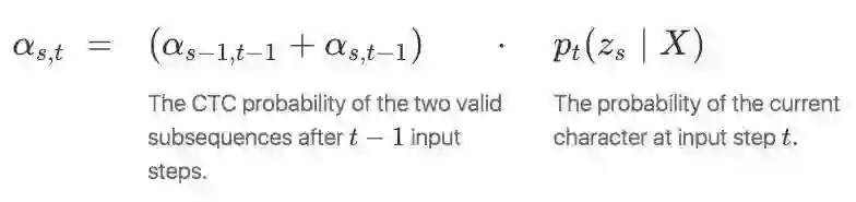 (s,t)表示第t个输入时Z1:s的CTC得分αs,t