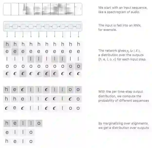 在这种情况下,联结主义时间分类器(Connectionist Temporal Classification),又名CTC,是一种让网络自动学会对齐的好方法,它十分适合被用于语音识别和书写识别。