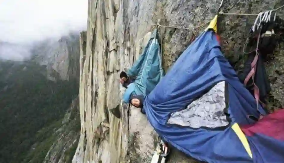 对于有的人来说,在草地上搭建帐篷,实在是太过乏味了。于是,一些“胆儿肥”的人,开始选择去悬崖上一展身手。