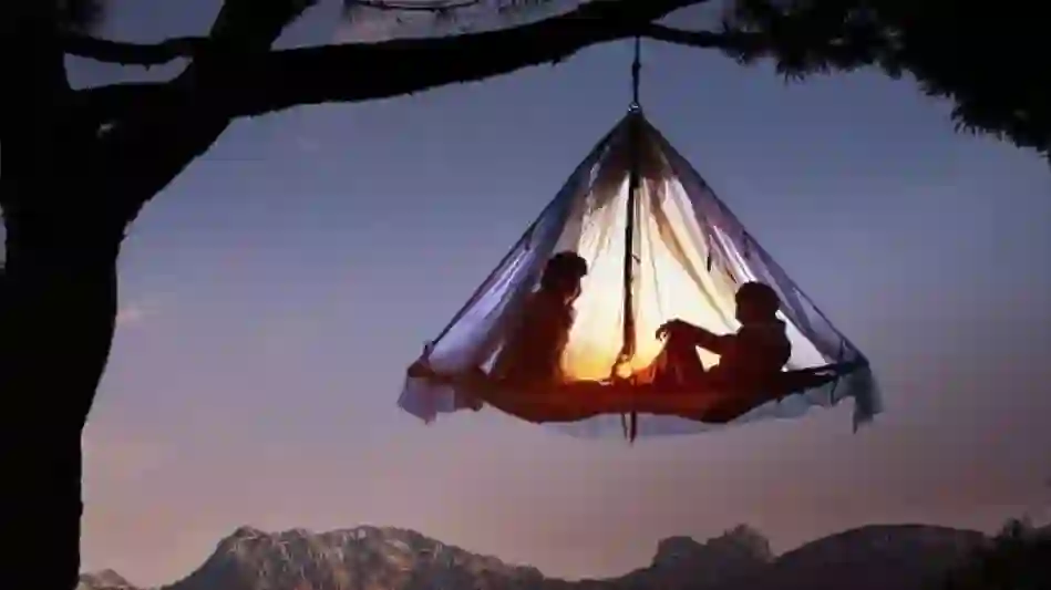 因为地面潮湿,地上有猛兽等原因,有的露营人把帐篷搭在了树上,做了一次“树上的男爵”。
