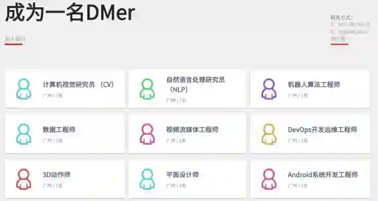 从 DMAI 在猎聘网上的介绍可以看到,公司大中华区坐落于广州南沙香江国际金融中心,地铁四号线金洲站附近。看起来,广州的小伙伴们又多了一个选择。目前,DMAI 正在全面招聘,涵盖计算机视觉、自然语言处理、机器人算法等诸多方向。