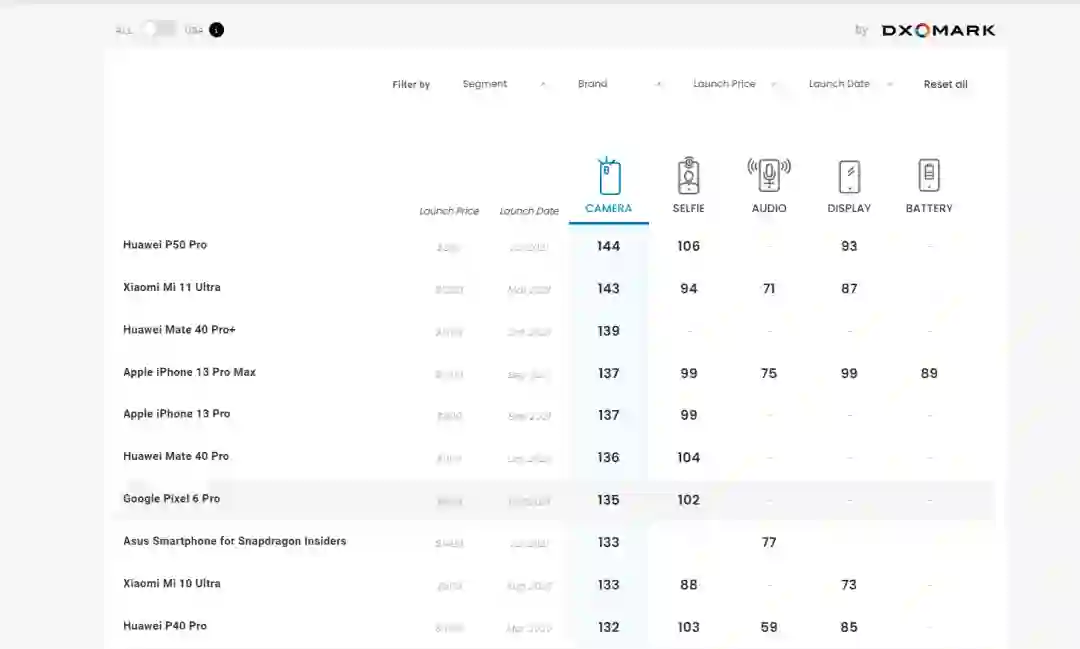 今日,DxOMark 官网更新了相机评分排行榜,谷歌 Pixel 6 Pro 135 分排名总榜第七,排在华为 Mate 40 Pro(136)之后,拍照(143)与变焦(71)得分子项目均不敌 iPhone 13 Pro Max(拍照 143、变焦 77)。总的来说,谷歌 Pixel 6 Pro 照片性能和视频质量还是比较出色,从成像的角度来看,选择 Android 的最佳选择,谷歌 Pixel 6 Pro 要高于三星和华硕。
