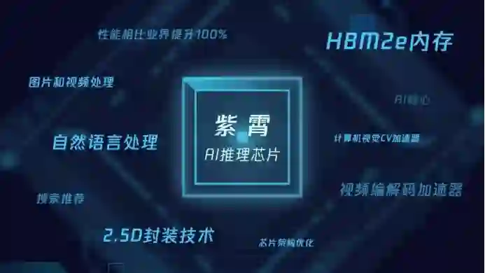 据腾讯介绍,紫霄 AI 推理芯片最突出的特点是结合图片和视频处理、自然语言处理、搜索推荐等场景,通过采用 2.5D 封装技术合封 HBM2e 内存与 AI 核心,以及在芯片内部增加计算机视觉 CV 加速器和视频编解码加速器等创新措施,对芯片架构进行了优化,打破了制约芯片算力发挥的瓶颈。腾讯云总裁邱跃鹏表示,AI 推理芯片紫霄性能相比业界提升 100%,目前已经流片成功并顺利点亮。