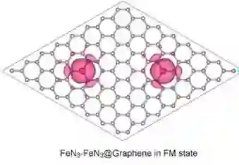他们把两个单独的铁原子通过氮原子固定在一块石墨烯材料上,构成了一个由石墨烯网络负载的两个铁单原子催化剂(FeN3-FeN3@graphene)。