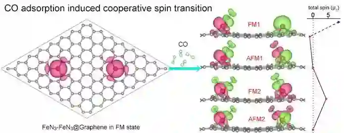一氧化碳分子吸附导致石墨烯负载的近邻铁单原子催化剂之间发生协同电子自旋转变