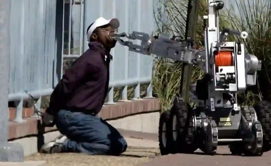 LAWS是否如部分人士担心的危险?赞成与反对者的立场又有甚么不同呢?图为美国的军警机器人正检查自杀炸弹客的嘴巴。 图/美联社