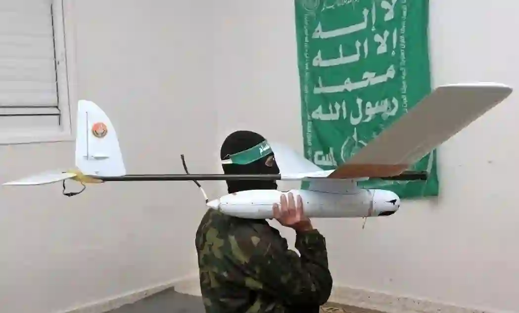 无人机是将沦为“穷人的智能炸弹”?随着商用无人机的普及,可能会出现更多自杀性爆炸,或是以其他恐怖主义模式威胁平民。图为巴勒斯坦激进武装组织“哈玛斯”(Ḥamas)手持无人机。 图/美联社