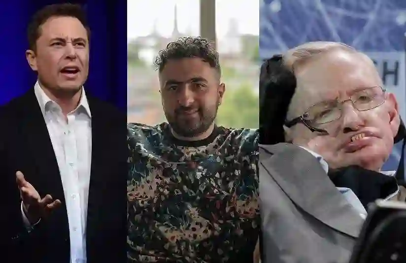 Tesla的执行长马斯克(左)与Deepmind(即AlphaGo的研发公司)的创办人苏莱曼(中)曾与百名专家共同呼吁禁止LAWS。已逝的物理学家霍金(右)也曾警告AI的危险性应谨慎应对。 图/法新社、维基共享、路透社