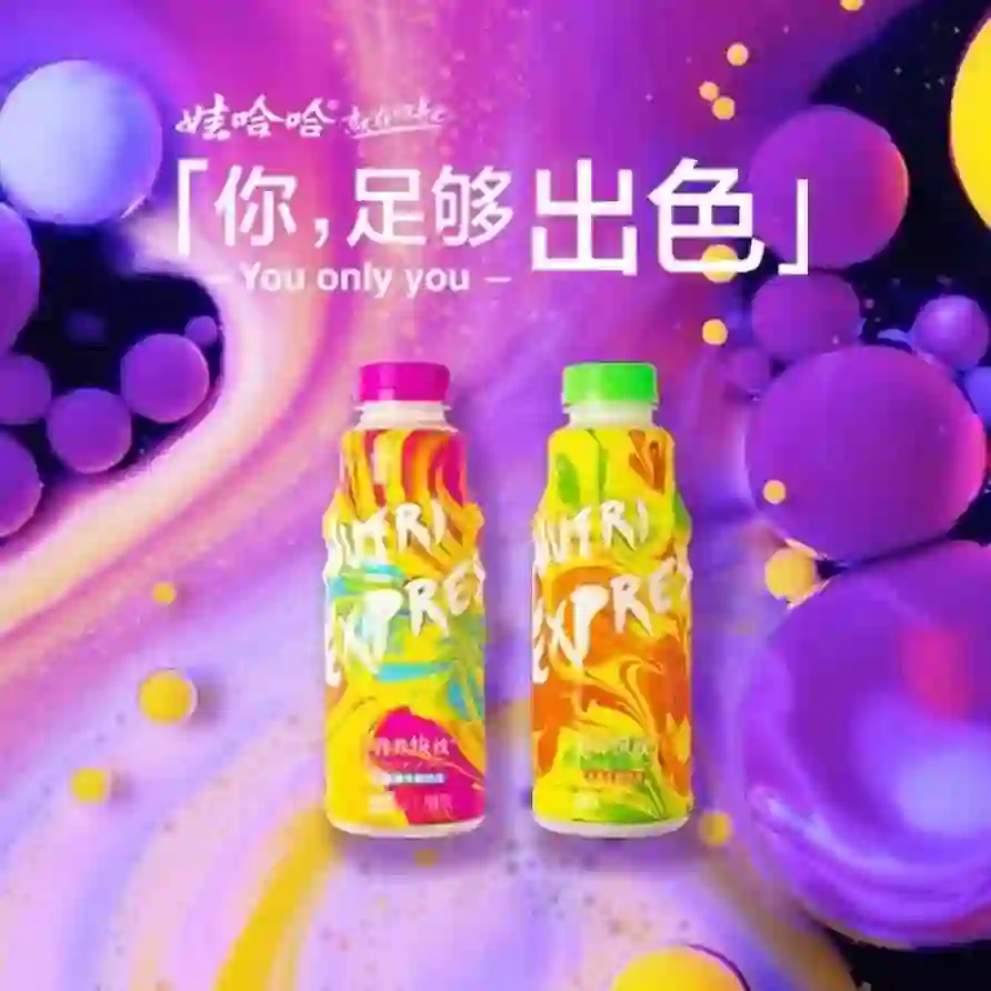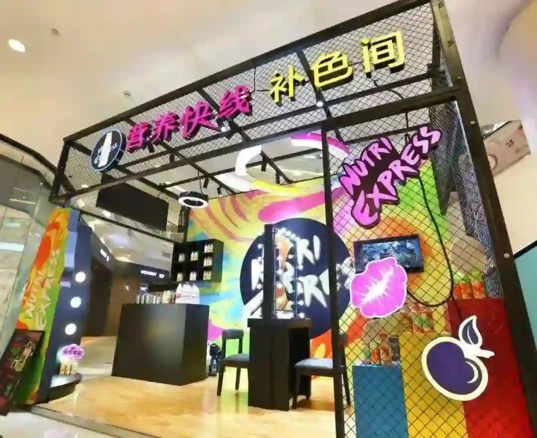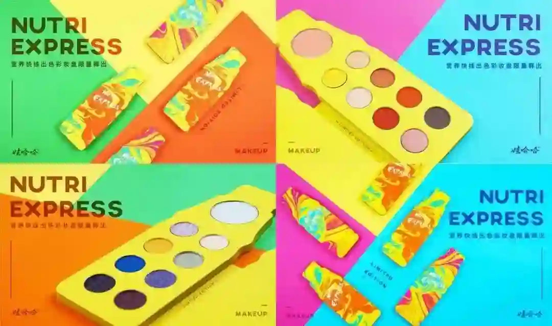 2018年,营养快线开始年轻化:也在瓶子上做文章,发布炫彩版包装;跨界推出限量版彩妆盘;并在杭州、广州、武汉三地开设快闪店,打造“营养快线补色间”。